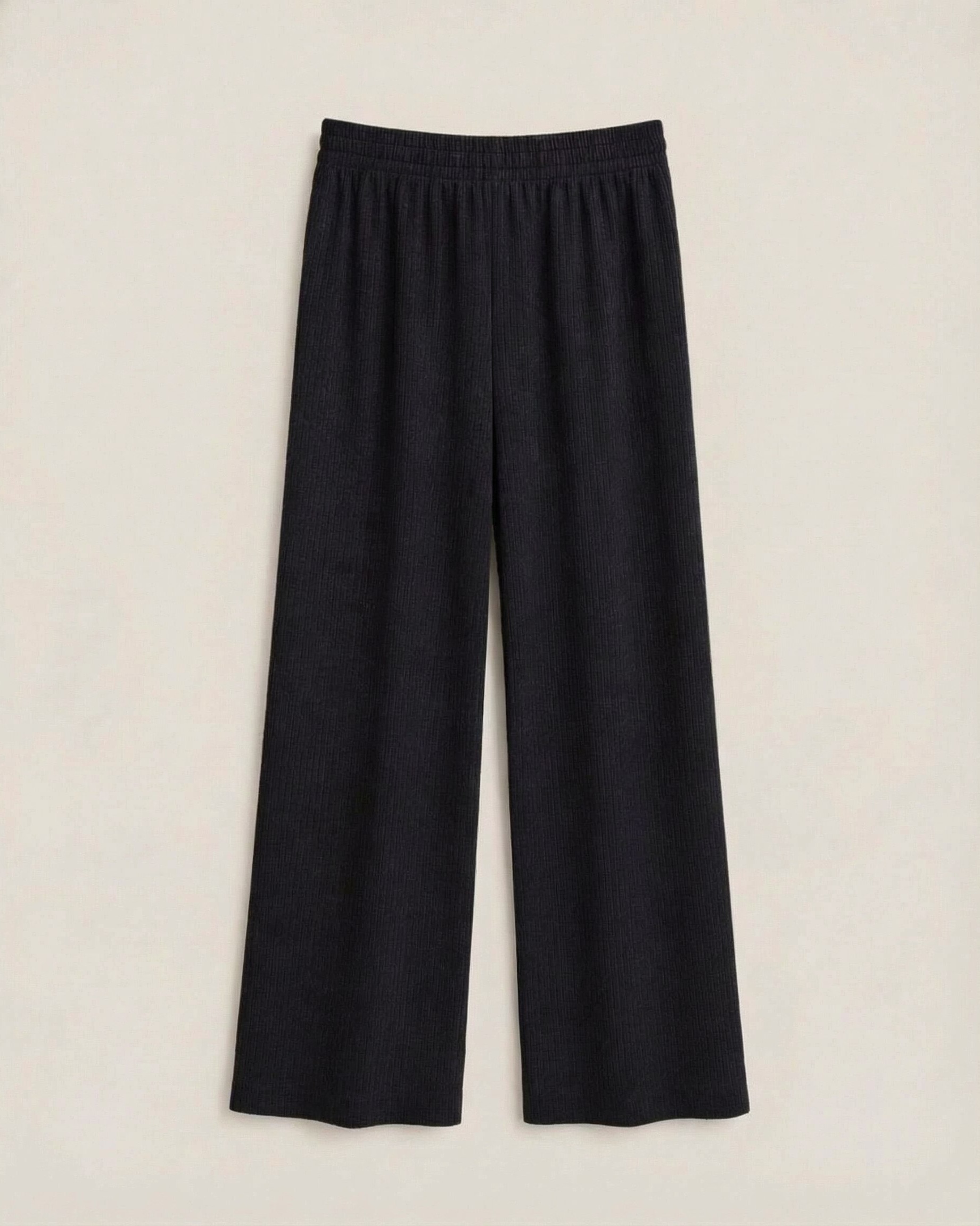 Брюки прямого кроя выполнены из тяжелого увесистого трикотажа. Пояс на...