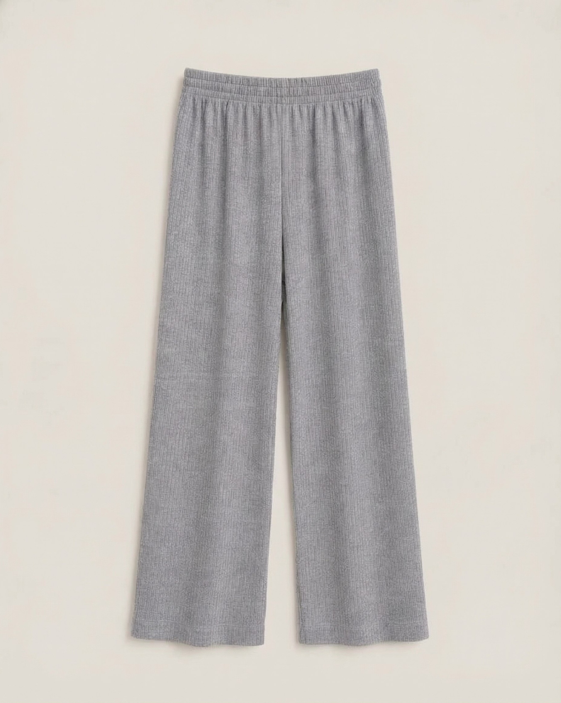 Брюки прямого кроя выполнены из тяжелого увесистого трикотажа. Пояс на...
