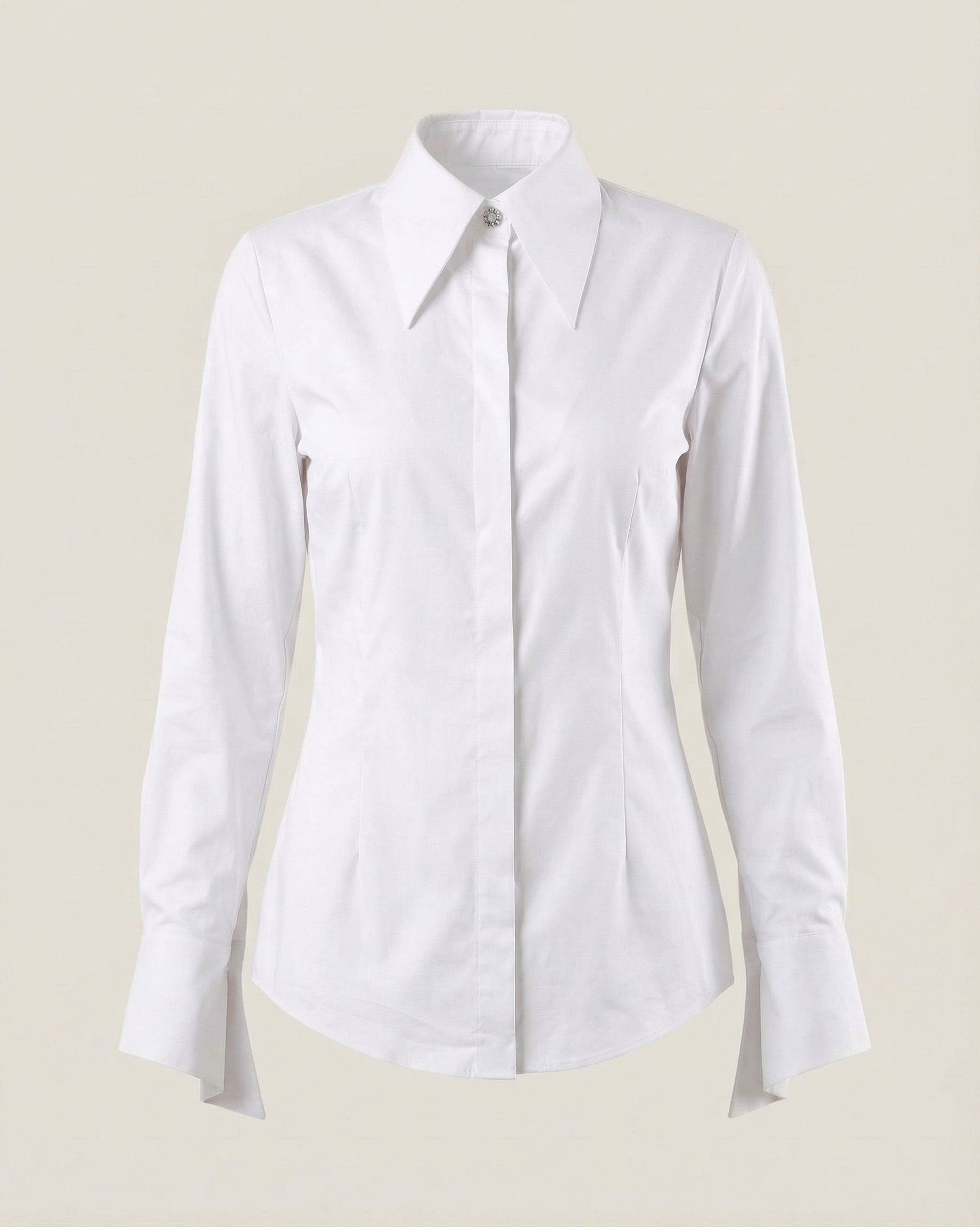 Манжеты можно носить в двух вариациях - на выпуск и на отворот. Оттенок рубашки - благородный жемчужный, он подобран профессиональным имидж-стилистом и подсвечивает оттенок кожи.