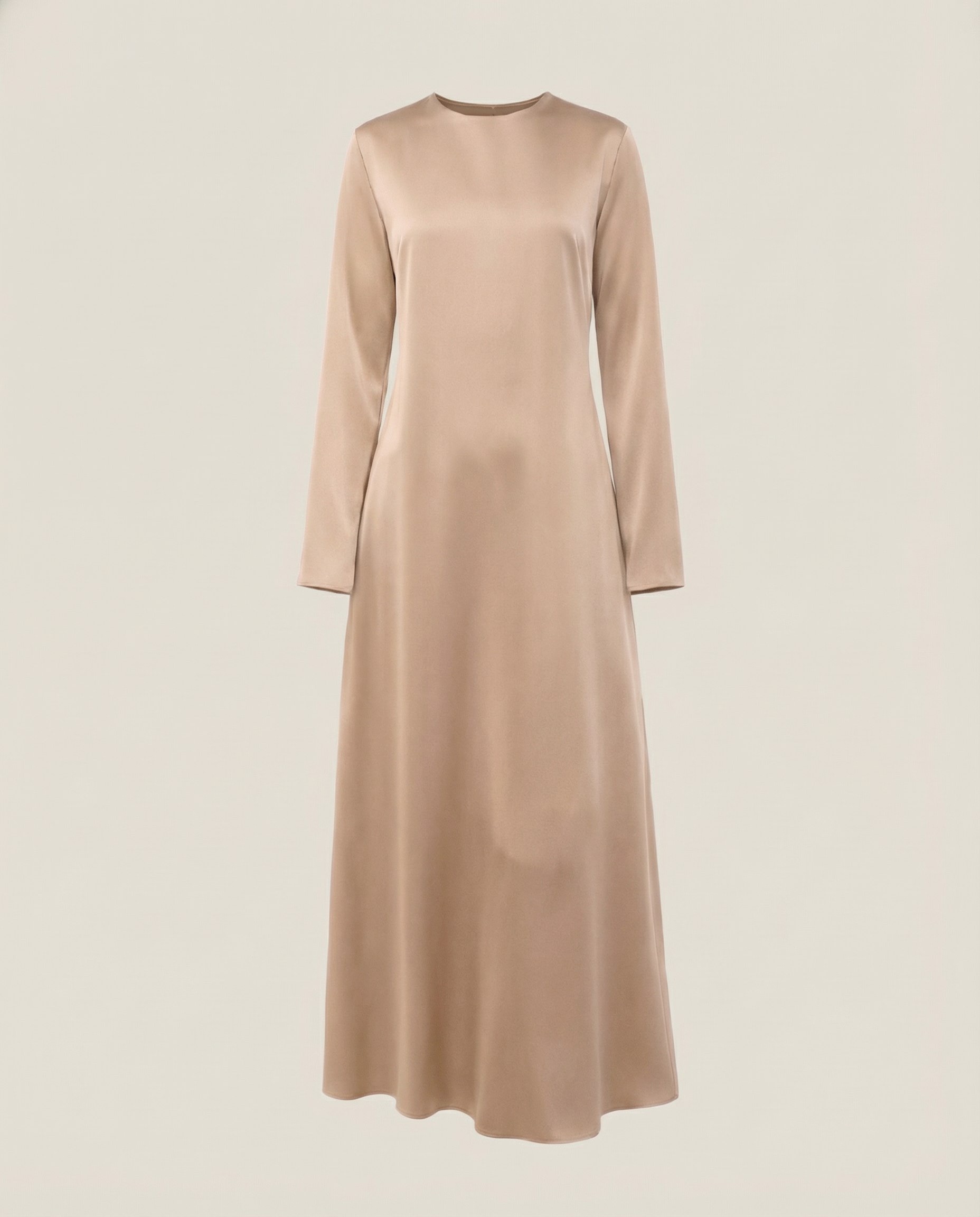 Оригинальное платье выполнено в нежнейшем шелке песочного отлива. Платье отлично впишется в эффектные будни и в элегантные вечера. Уникальность платья в драпировке и сборке по линии талии. Увесистые переливы шелка и изящная завязка наилучшим образом оформляют линию лопаток. Носите платье с лифом по типу бра или накладными силиконовыми элементами. Длина платья- полноценное миди. Ткань плотная и увесистая - стекает по фигуре, элегантно оформляя изгибы тела.