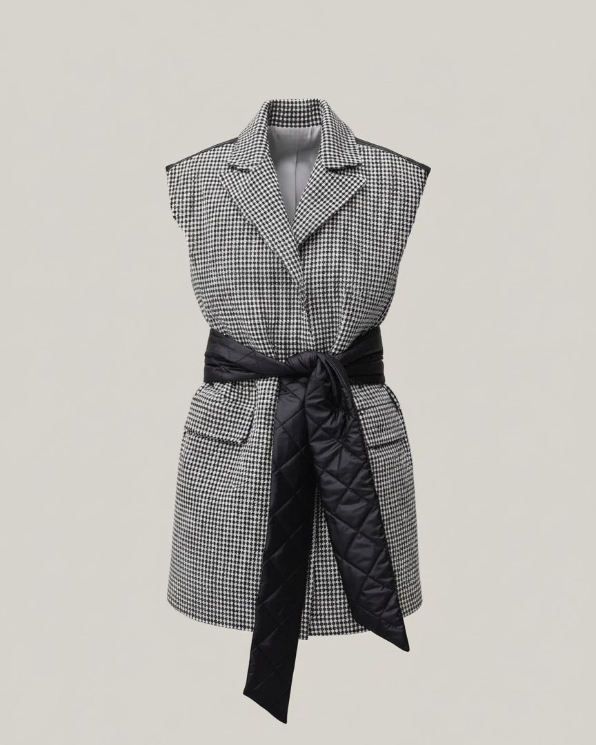 Комбинированный жилет в трендовой расцветке гусиная лапка