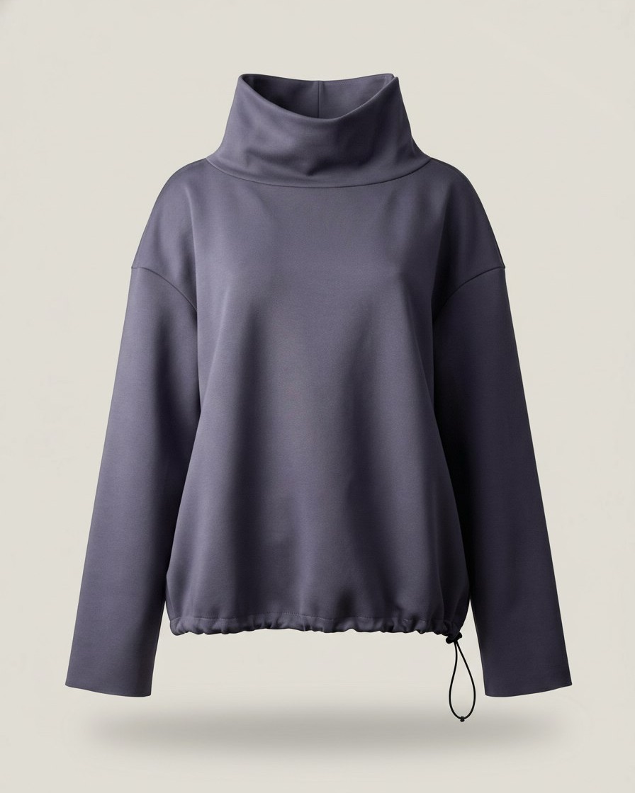 Современный джемпер из мягкого трикотажа джерси в благородном сером оттенке — идеальное сочетание комфорта, функциональности и актуального дизайна. Модель дополнена воротником-стойкой с молнией, проходящей по вороту и почти по всей длине рукава, что позволяет носить джемпер в разных вариантах: застёгнутым для лаконичного образа или расстёгнутым, красиво драпируя воротник и слегка открывая плечо. Низ изделия оформлен кулисой — при желании его можно затянуть, придав силуэту объём и динамику. Единый размер идеально подходит для параметров 42–48, мягко адаптируясь к фигуре и создавая стильный, расслабленный образ.