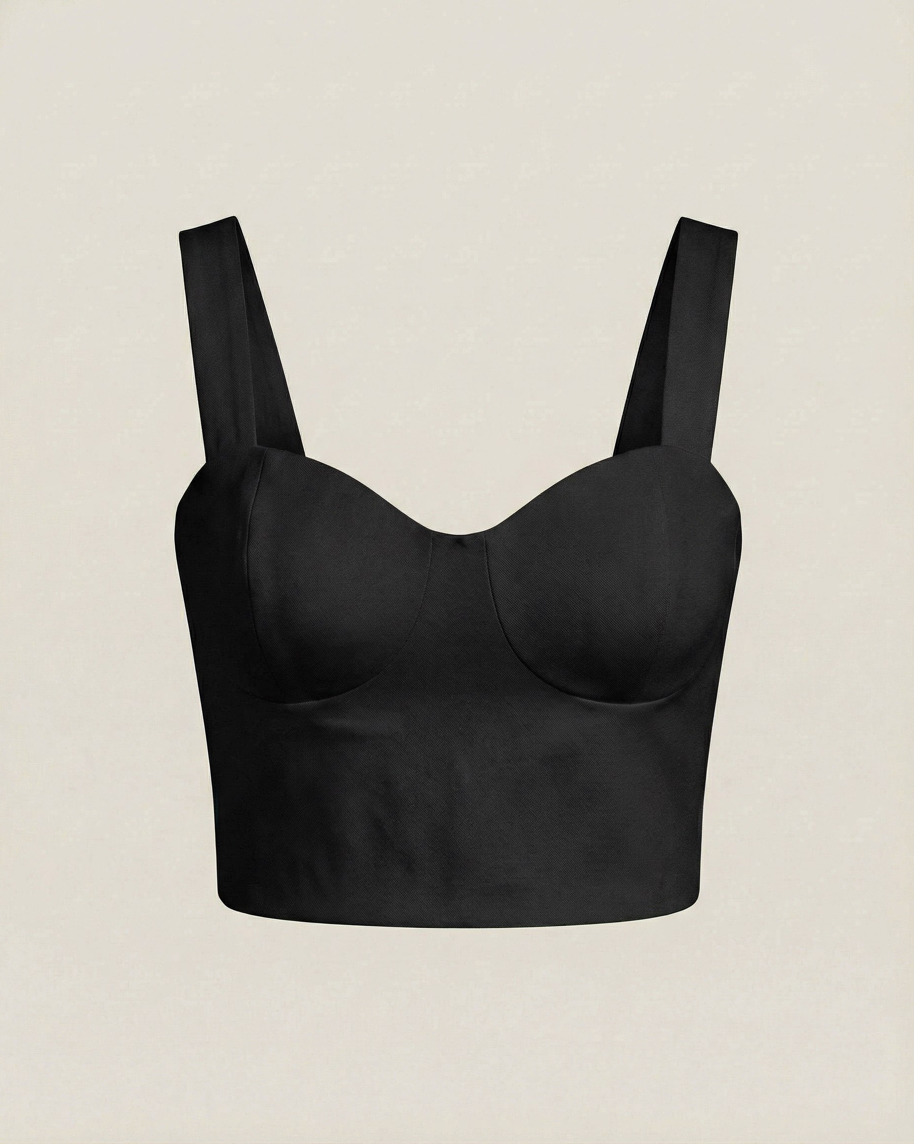 Топ бюстье выполнен из плательной ткани средней плотности - ткань не мнется и не деформируется. Топ ловко формирует линию декольте благодаря вшитой плотной чашки с наполнителем. Широкая лямочка прекрасно держит топ на теле, а шнуровка не только привносит интересный декор, но и позволяет регулировать плотность топа на частях тела. Имя топа lubovnik - он  будет обнимать и сопровождать вас каждый день. Надевайте его под костюм, свитер, рубашку или носите, как самостоятельный предмет.