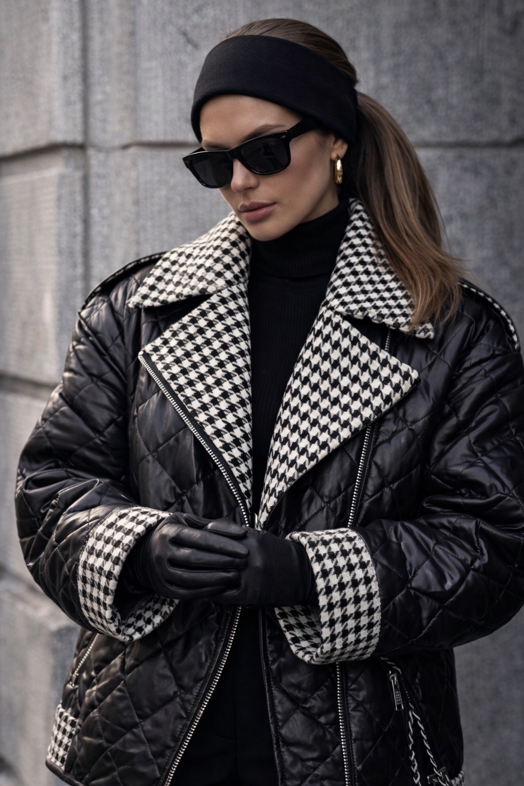 Пальто-косуха оверсайз из лимитированной коллекции — эффектная модель, в которой гармонично сочетаются стёганая плащевая ткань и акцентная пальтовая вставка с трендовым принтом. Контраст фактур и расцветок создаёт стильный, выразительный образ в духе современного city chic. Крой в стиле косухи придаёт характер, паты на плечах усиливают модный акцент, а регулируемый низ на кнопках позволяет менять силуэт — от более прямого до объёмного. Идеальный выбор для тех, кто ценит комфорт, актуальный дизайн и эксклюзивность в каждой детали.