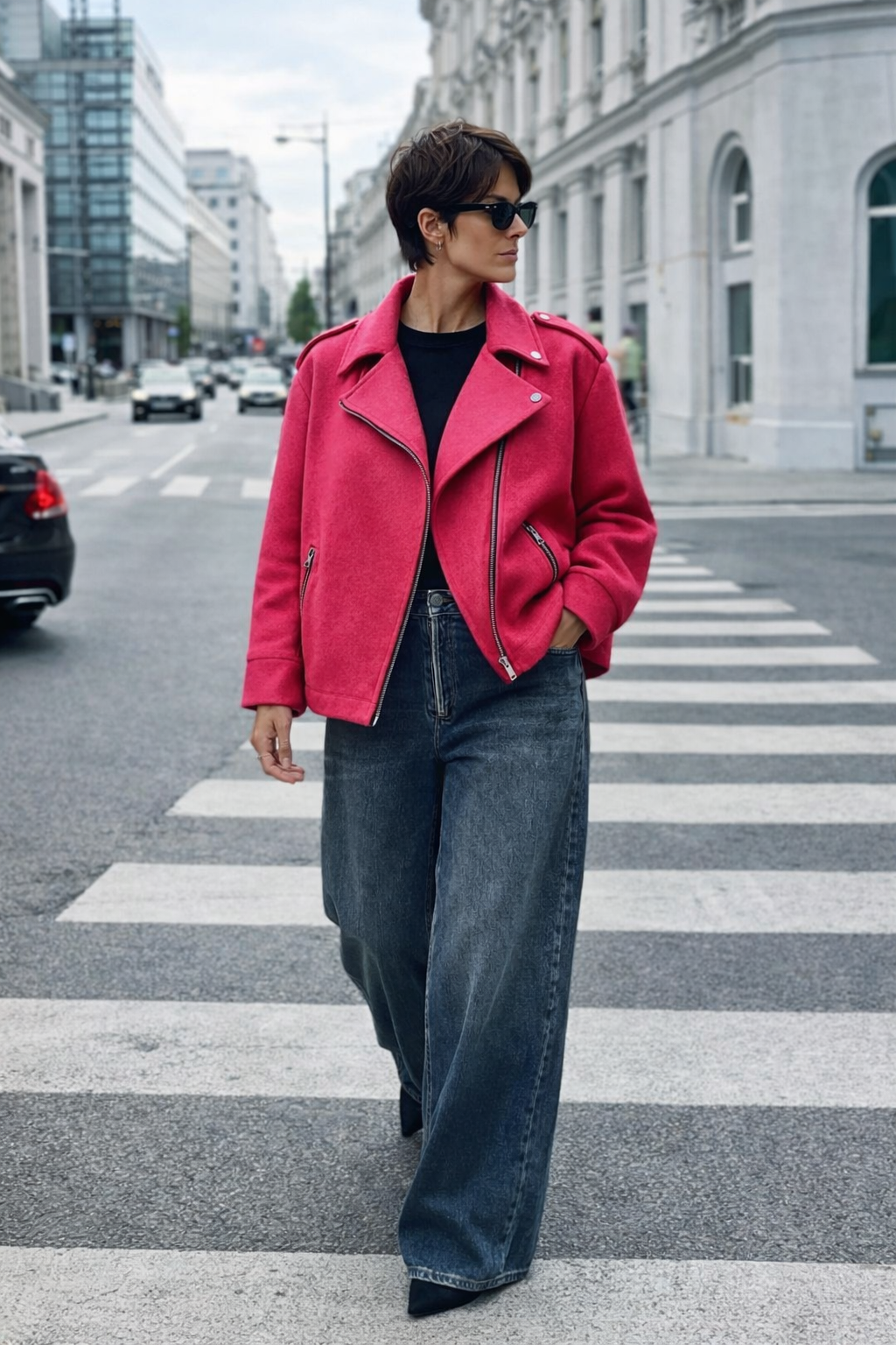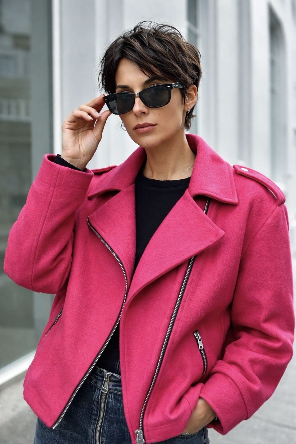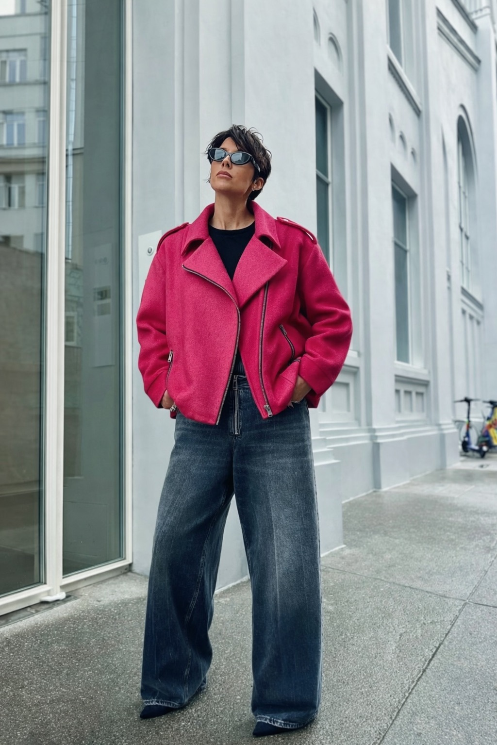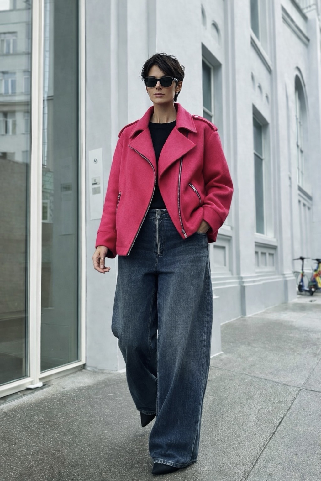 Эффектное пальто в крое удлинённой косухи — стильное решение для современного гардероба.
