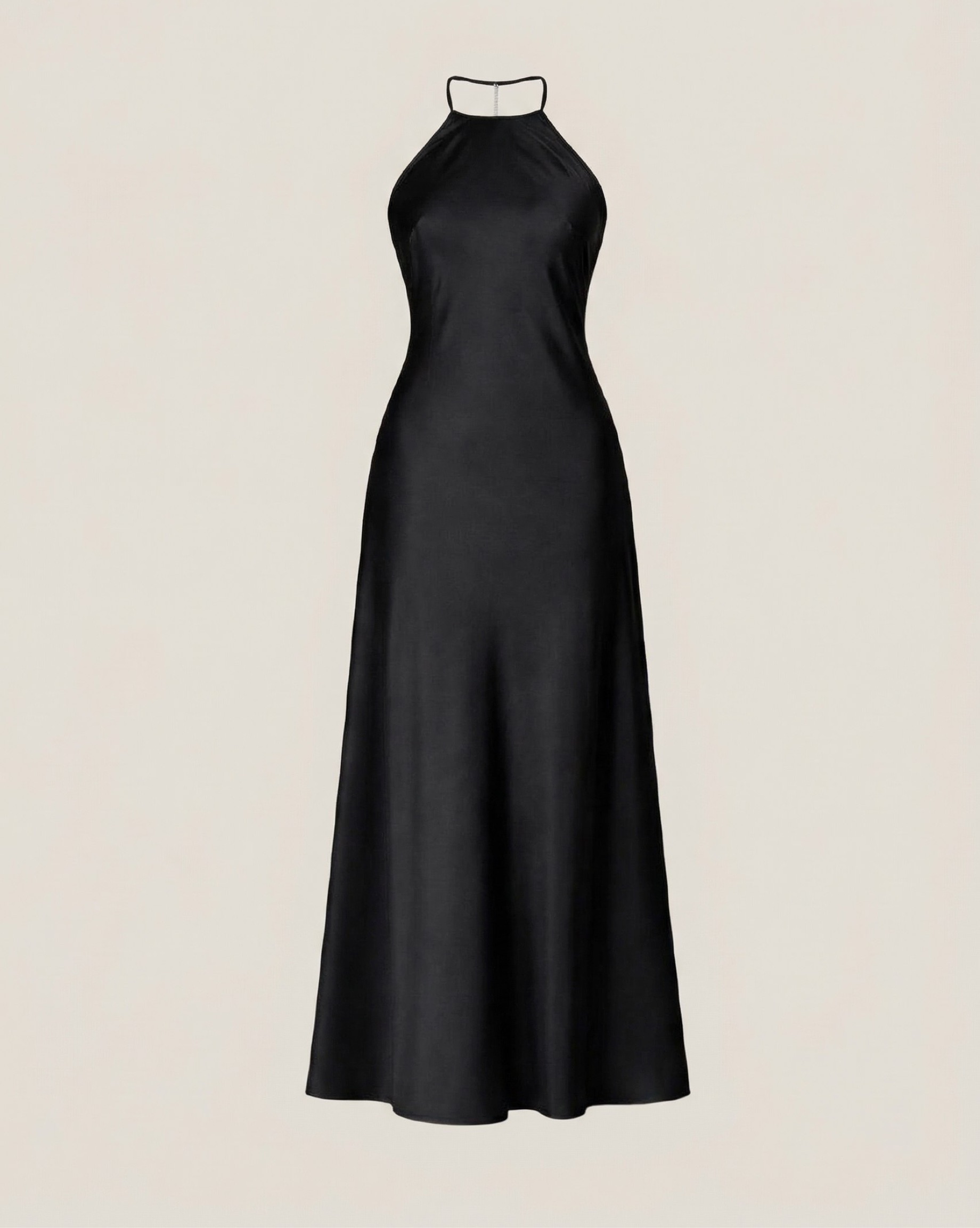 Макси-платье из натурального шёлка — про тишину роскоши и эффектное появление. Лаконичный силуэт спереди и открытая спина создают запоминающийся контраст, а горловина-хальтер визуально вытягивает линию плеч.