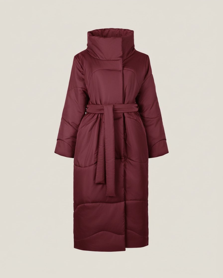Пуховик выполнен в насыщенном винном оттенке. Обратите внимание на беж, серый и винный оттенки.