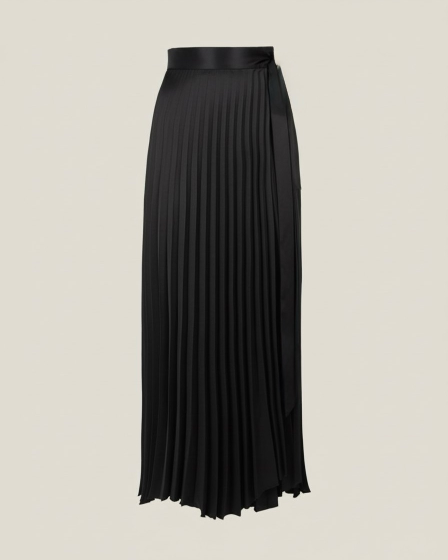 Юбка плиссе выполнена из сатена. Даже плиссировка здесь стройнящая, так как складка расширяется к низу. Это трендовый и необычный эффект. Плиссировка изготавливается в лаборатории IVLE вручную и будет служить вам верой и правдой.